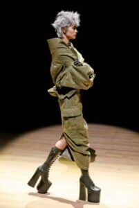A dynamic moment from the Marc Jacobs 2023 show, where theatrical styling meets cinematic presentation.
