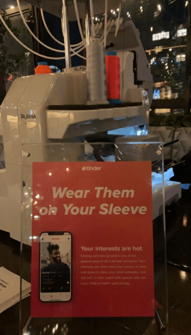At Tinder’s exclusive event, NYES had the privilege of enhancing the event by offering our expertise in custom embroidery. Guests were invited to personalize the sleeves of their garment, creating an interactive experience. By doing this, we were able to align with Tinder’s focus on connection and personalization.